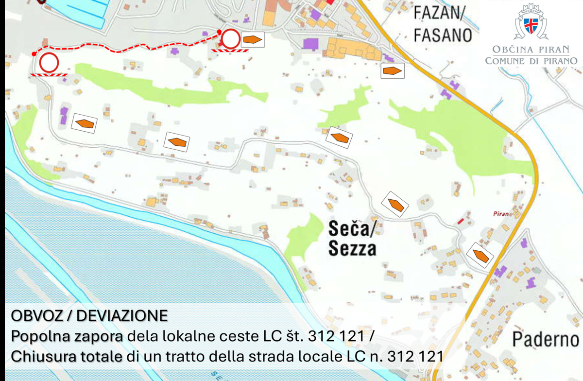 Obvoz bo urejen preko križišča na državni cesti Lucija – Seča (ob Stazione Parenzana).