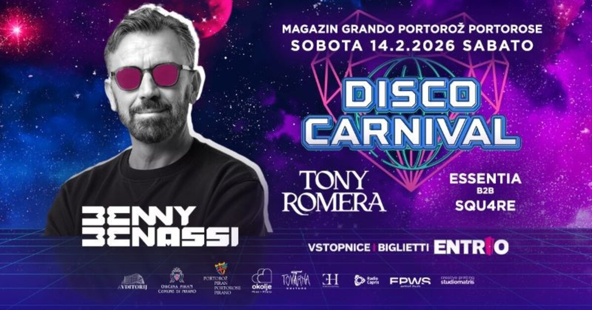 Il Comune di Pirano vi invita a uno dei più grandi eventi musicali e di intrattenimento del periodo carnevalesco in Istria: il Disco Carnival 2026, che si svolgerà sabato 14 febbraio 2026 presso il Magazin Grando di Portorose.